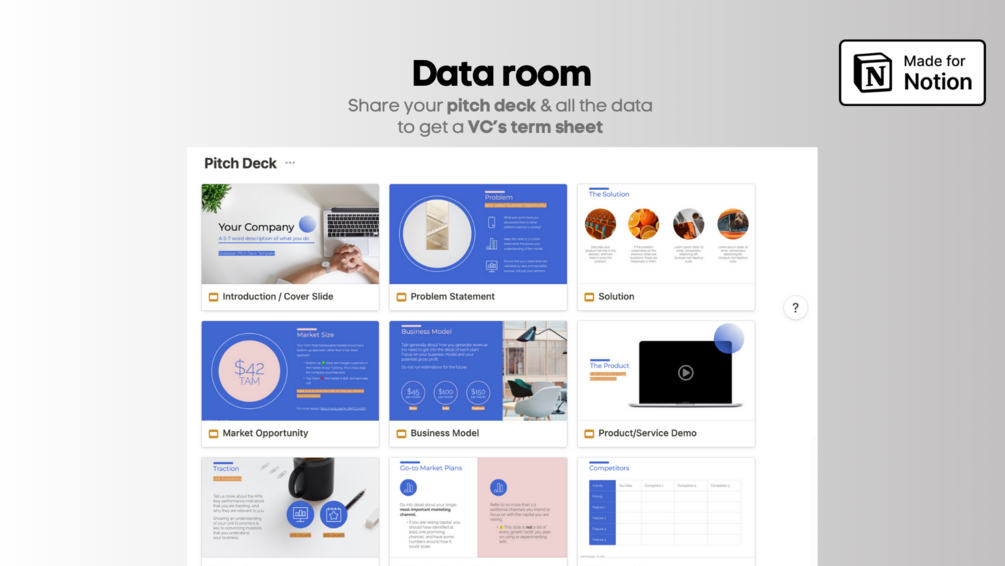 - ๐ Secure Dataroom: Share vital docs with peace of mind, ensuring only chosen investors get access.
