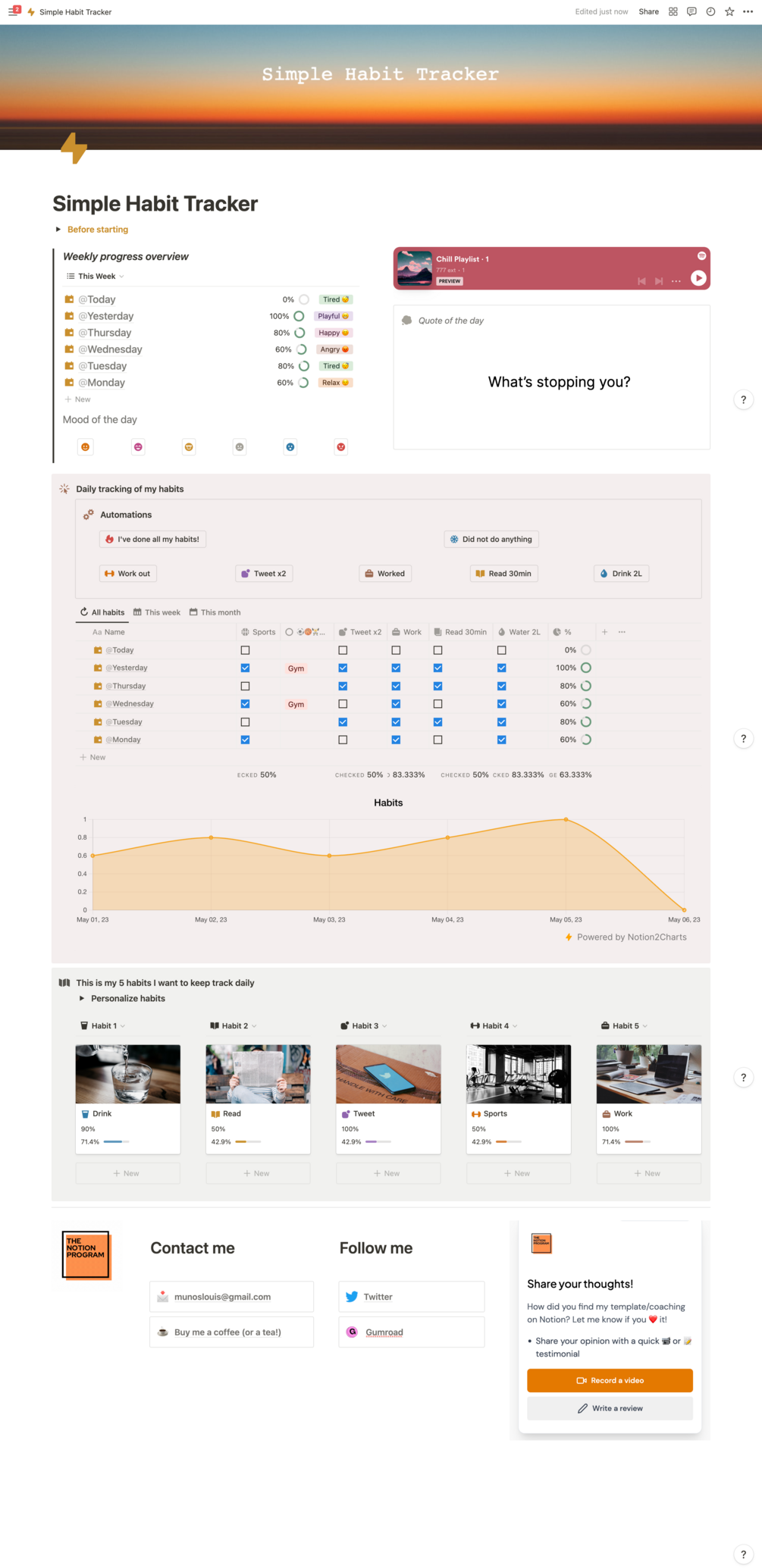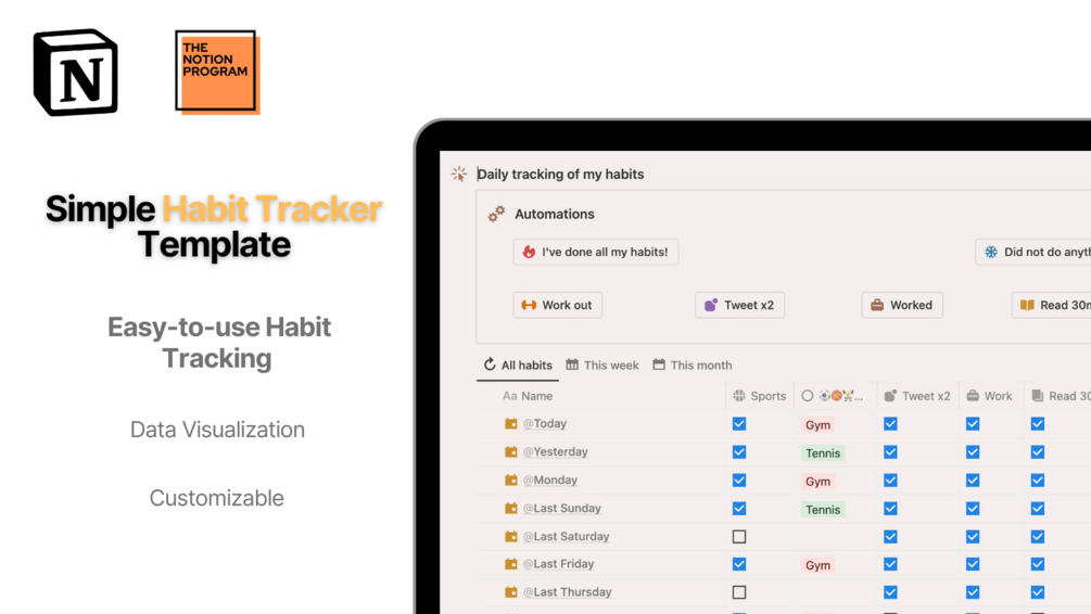 Introducing the "Simple Habit Tracker" Notion template - the easiest & most efficient way to track your daily habits and achieve your goals!